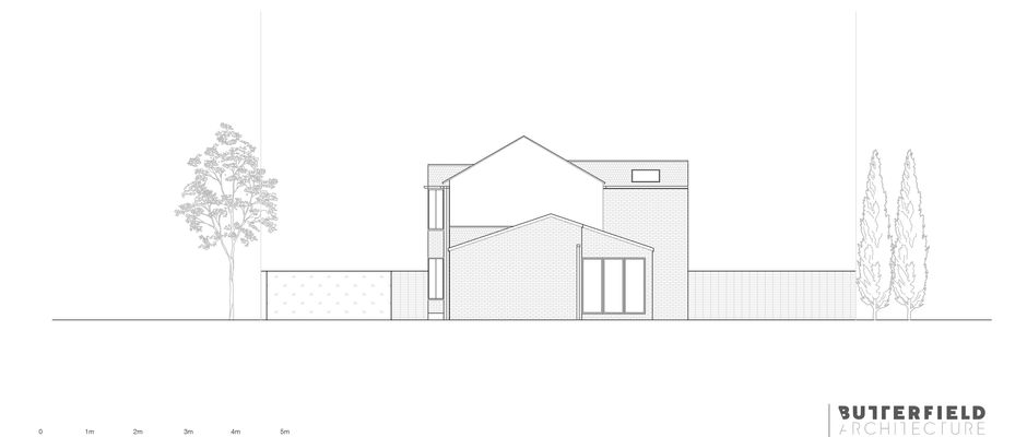 The clients desired a large terrace, a house extension to create a dressing room and a covered area at the rear. The proposed terrace roof’s shape connects the L shaped house, while the front entrance was enclosed and extended.
